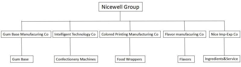 Nice Gumbase Co is a subsidiary of Nicewell Group. It’s an integrated manufacturing company dedicated to the research&development, production and distribution of Gum base. At present, more than 260 different models of gum base are sold to more than 50 countries in the world, as Russia, Japan, Turkey, Argentina, Ethiopia, India,Pakistan, Syria, Afghanistan, Sudan, Canada, Algeria.....And, we always develop more better or fitter gum base for our clients to improve their quality forever.